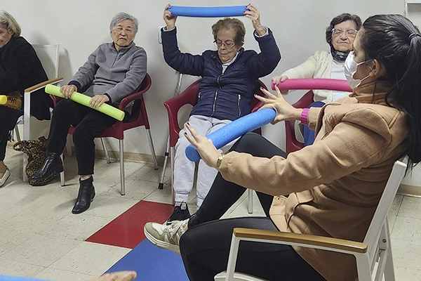 Sessões com fisioterapeuta, terapeuta ocupacional e educador físico promovem o fortalecimento muscular e cognitivo.